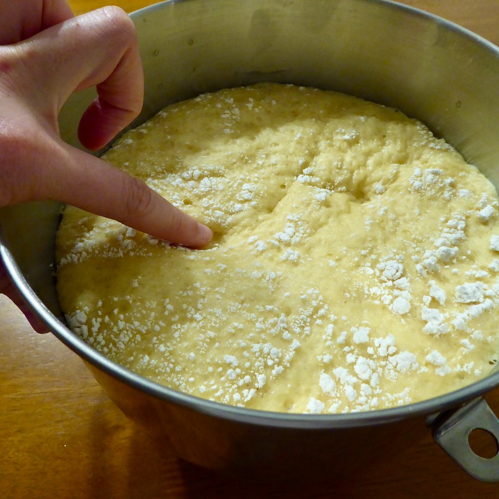 Let rise for 1.5-3 hours, times will vary depending on how warm your house is/how finicky the dough feels like being today. At the end point, the dough should at least have double in size, and you should be able to poke it and have it leave an indent.